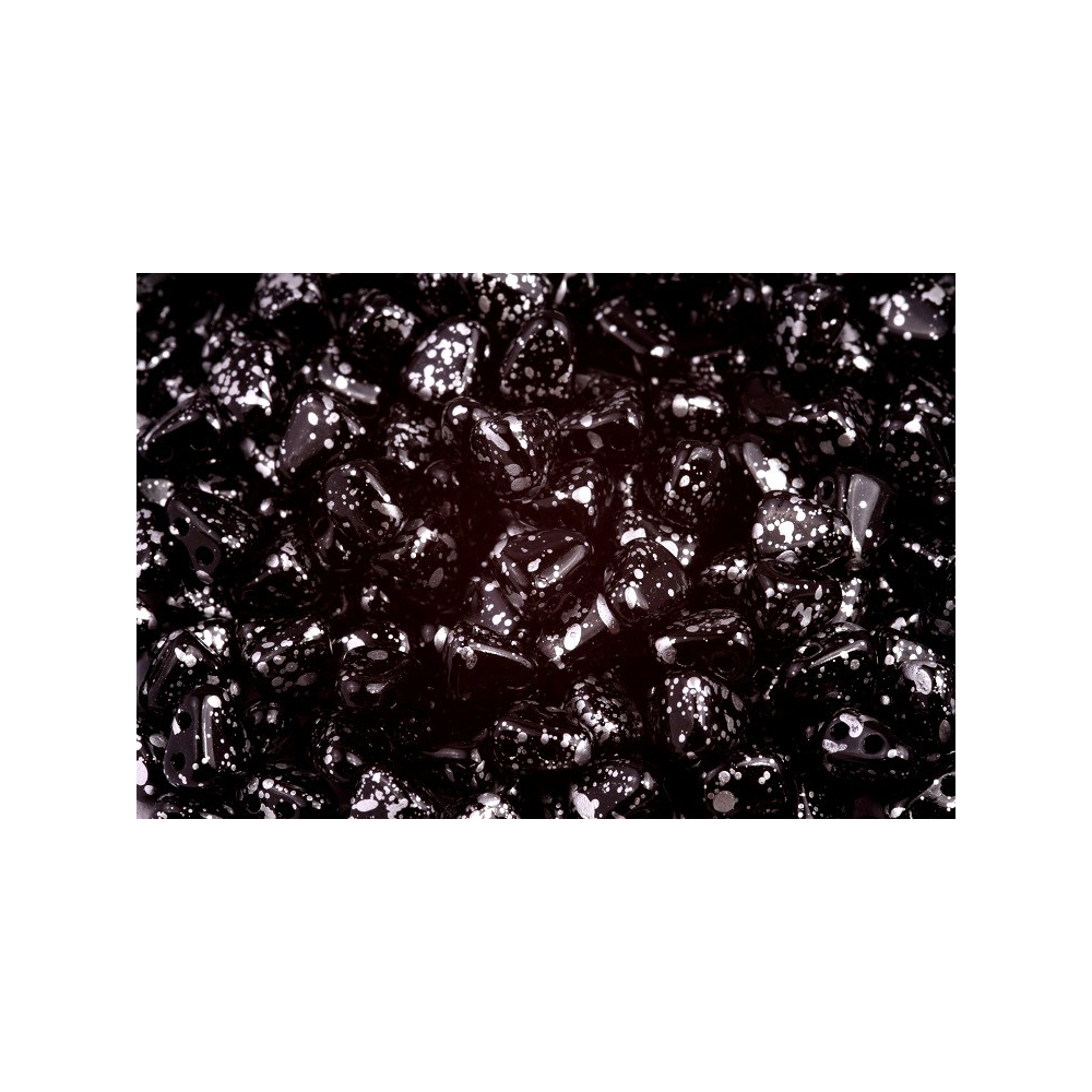 Geometricky přesné dvoudírkové korálky Matubo™ Nib-Bit s rozměry 6x5 mm představují špičku v českém sklářském řemesle, vyráběné z prvotřídní skloviny Preciosa Ornela. Povrchová úprava Silver Splash Jet (kód 23980/15481) kombinuje hlubokou neprůhlednou černou se stříbrným postřikem, což vytváří luxusní metalický efekt. Díky precizně vylisovaným otvorům o průměru 0,8 mm je zajištěna dokonalá průchodnost nitě i při vícenásobném provlékání, což je klíčové pro stabilitu komplexních šitých šperků. Tyto korálky skvěle doplňují oblíbené Matubo SuperDuo v náročných vzorech, kde jejich klínovitý tvar umožňuje plynulé přechody a vytváření dokonalých kruhových motivů.