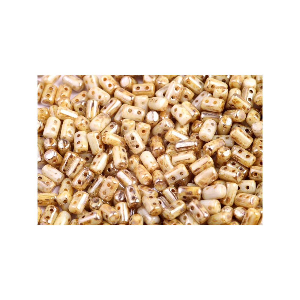 České sklo té nejvyšší kvality, získávané ve formě skloviny od dodavatele Preciosa Ornela, tvoří základ pro barvu Chalk Rembrandt s kódem 03000/43500. Tato povrchová úprava kombinuje krémový podklad s nepravidelným metalickým dekorem, což dodává hotovým designům autentický historický vzhled. Pro dosažení maximální plasticity doporučujeme tento typ kombinovat s dalšími tvary, například když použijete rokajl Preciosa ve velikosti 10/0 pro vyplnění mezer v náramcích.