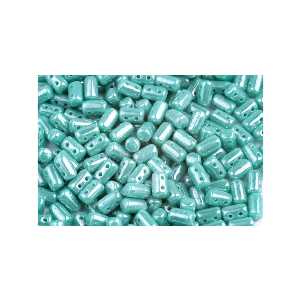 Matubo™ Rulla v podmanivém odstínu TURQUOISE GREEN WHITE LUSTER (kód 63130/14400) představuje moderní pojetí geometrie v umělecké tvorbě. Tyto dvoudírkové korálky o rozměru 3x5 mm jsou vylisovány z vysoce kvalitního skla a díky své technologicky pokročilé výrobě si zachovávají naprostou tvarovou stejnost, která je klíčová pro symetrické vzory.