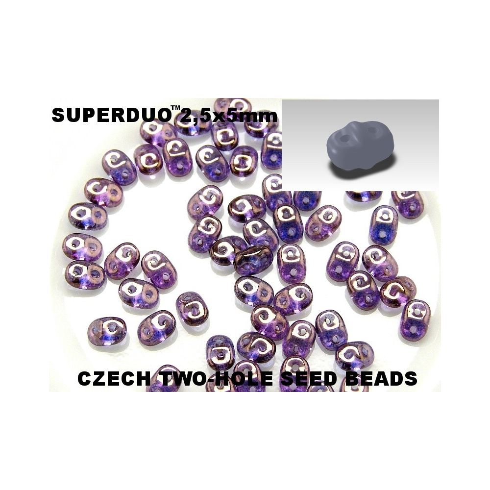 Matubo SuperDuo 2,5x5 mm OPAL VIOLET MAT 21010/84110 Velikost: 2,5x5 mm Velikost průvleku: 0,8...