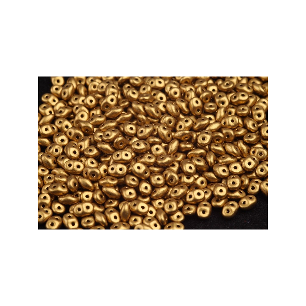 Historie mačkání skla v České republice dosahuje světového věhlasu a Matubo Superduo v matném zlatém provedení je moderním pokračovatelem tohoto řemesla, který exceluje v pokročilých vzorech vedle MATUBO MiniDuo. Matný metalický povrch krásně ladí s kontrastním černým jetem pro dramatický efekt nebo se harmonicky doplňuje s barvou crystal AB pro vytvoření jemného duhového nádechu. Využití najdou nejen v náhrdelnících, ale i v bohatě zdobených manžetách, kde je kladen důraz na symetrii a luxusní vzhled tradičního českého materiálu.