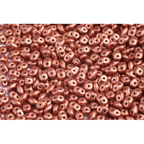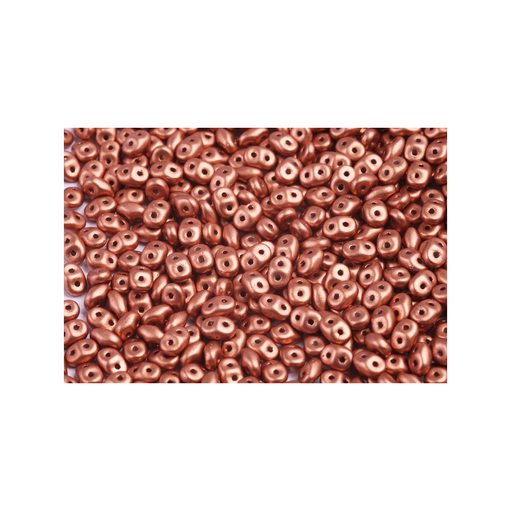 Měděný metalický povrch v odstínu Crystal Bronze Vintage Copper definuje tyto precizně tvarované Matubo Superduo o rozměru 2,5x5 mm. Tyto české skleněné korálky jsou vyrobeny z kvalitní skloviny Preciosa Ornela a vyznačují se naprostou tvarovou stálostí a hladkými hranami průvleků. Díky dvěma dírkám o průměru 0,8 mm umožňují vytvářet složité prostorové struktury a pevné geometrické vzory, které u jednodírkových korálků nejsou možné.