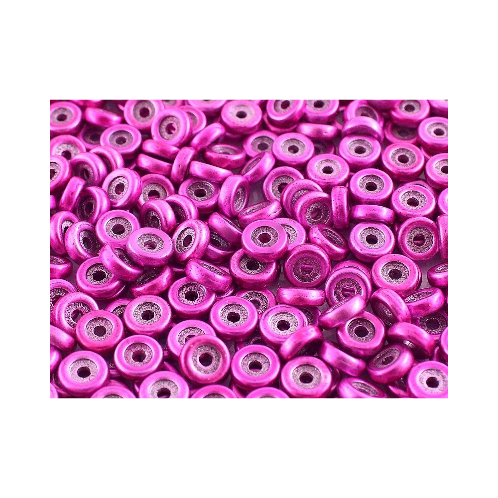 Šestimilimetrové Matubo™ Wheel v odstínu metalické fuchsiové představují precizně lisované české skleněné korálky s unikátním tvarem disku a prohlubní kolem středu. Velkorysý průtah o velikosti 1,5 mm je navržen pro pohodlný vícenásobný průchod nití korálkem, což z nich dělá ideální volbu pro strukturní beadweaving a prostorové šperky. Díky technologické vyspělosti výroby mají tyto komponenty dokonale hladké hrany, které chrání návlekový materiál před otěrem i při intenzivním používání.