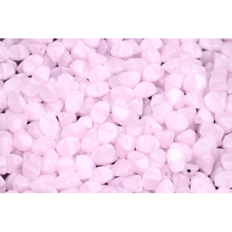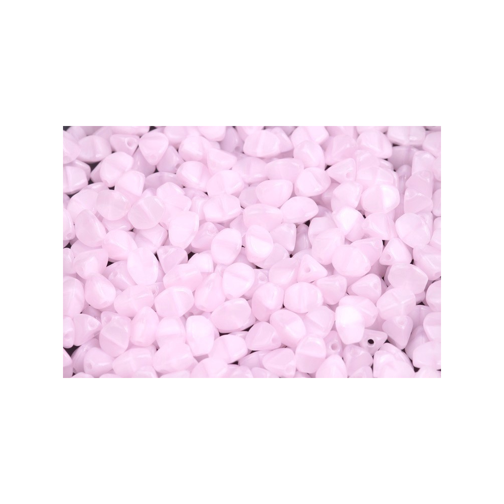 Jemná růžová barva s mléčným nádechem definuje tyto skleněné korálky typu Pinch beads, u nás známé jako pohanka. Tento specifický tvar vzniká precizním mačkáním horké skloviny v dílně rodinné firmy Rutkovský, která v České republice udržuje tradiční sklářství na nejvyšší úrovni a dbá na unikátnost každé formy. Díky svému trojbokému zploštění se skvěle doplňují s korálky Matubo™ SuperDuo, kdy do sebe jednotlivé tvary geometricky zapadají a vytvářejí bohaté plastické struktury v náročných vzorech. Pro výrazný kontrast v designu je zkombinujte se sytě smaragdově zelenou barvou.