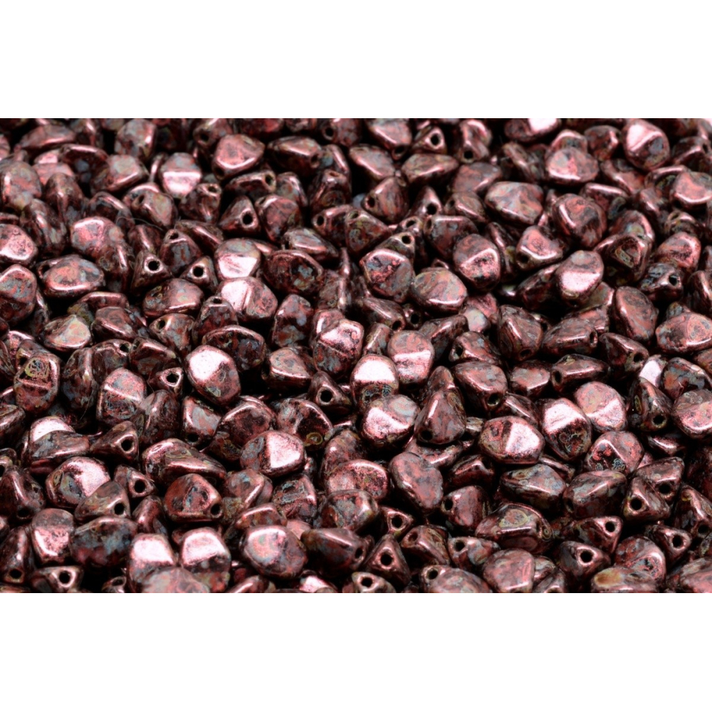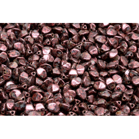 Metalicky růžový tóny s unikátním kropenatým efektem přinášejí do světa bižuterní tvorby neotřelý vizuální zážitek. Pinch Beads, v České republice známé pod názvem pohanka, jsou výsledkem precizního českého sklářství z dílny rodinné firmy Rutkovský. Tyto skleněné korálky vynikají svým specifickým trojbokým tvarem, který při sestavení do řady vytváří dynamickou texturu připomínající přírodní struktury a dodává šperkům moderní geometrický vzhled.