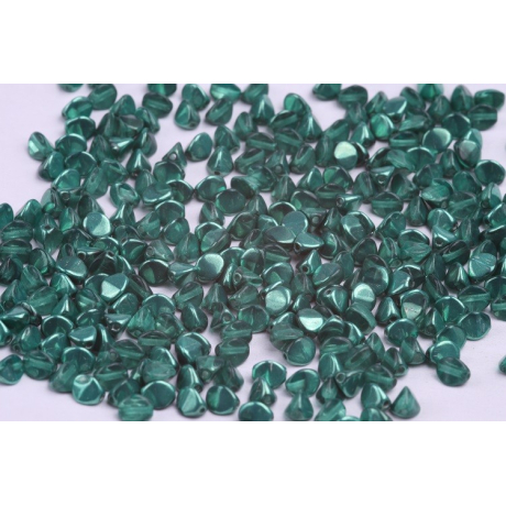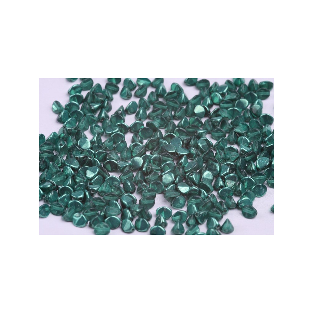 Tyrkysová barva se saténovým leskem vdechuje život těmto ručně mačkaným korálkům, které pocházejí z tradiční rodinné dílny Rutkovský, Česká republika. Výroba každého kusu navazuje na staletou historii severočeského sklářství, kde se preciznost snoubí s uměleckým citem pro detail a tradičními postupy. Tyto korálky s mezinárodním názvem Pinch Beads mají unikátní trojboký tvar, který díky své geometrii perfektně zapadá do složitějších prostorových kompozic a dodává výsledným šperkům neotřelou hloubku.