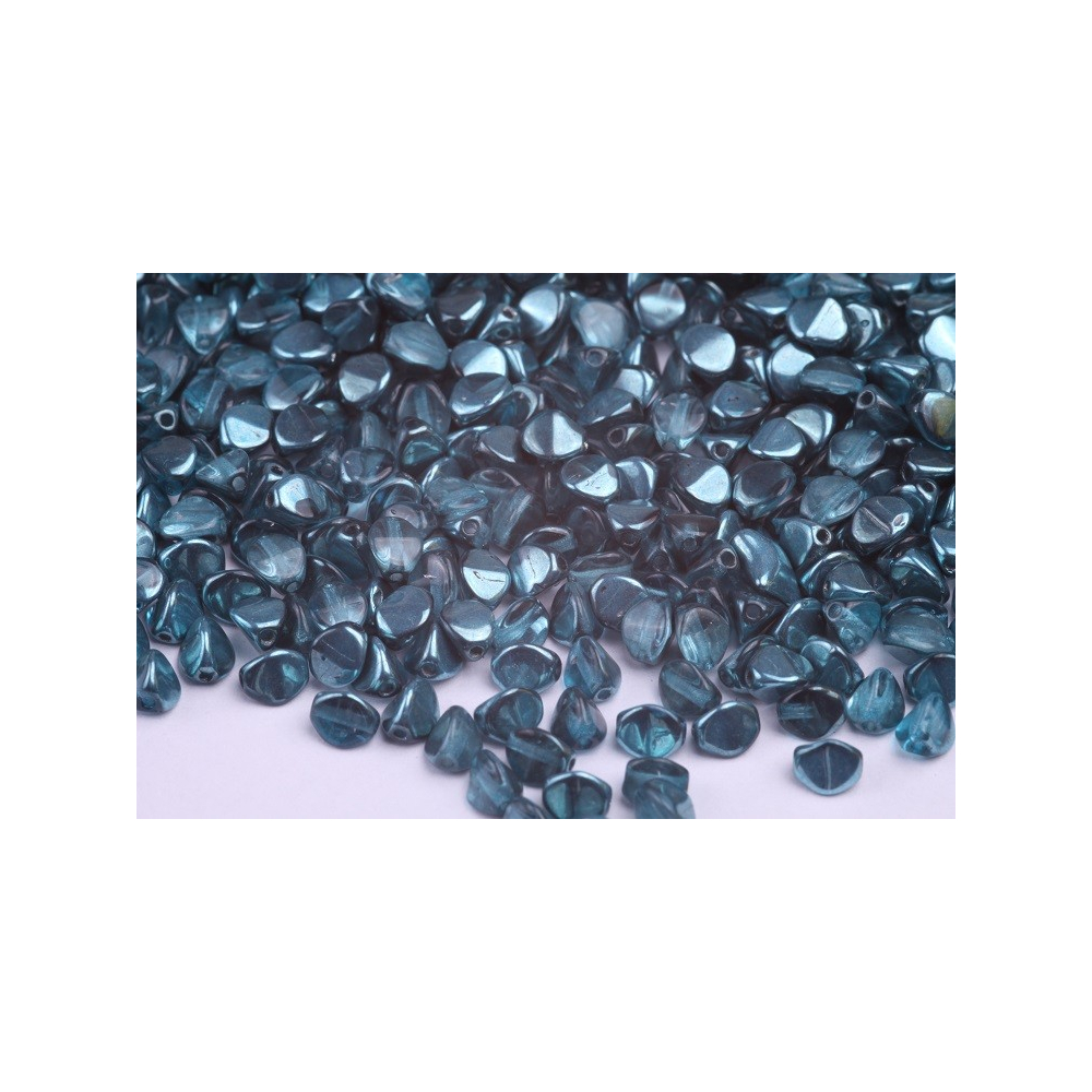 Modrá barva s jemným kovovým odleskem charakterizuje tyto originální Pinch Beads od tradičního rodinného výrobce Rutkovský, Česká republika. Tyto skleněné korálky ve tvaru trojbokého hranolu, známé pod českým názvem pohanka, se vyznačují precizně mačkanou formou, přičemž jako ideální výplň v jejich vzorech skvěle poslouží drobný rokajl Preciosa. Vizuální hloubka odstínu 10016AL vynikne zejména v kombinaci s kontrastní zlatou barvou nebo v harmonickém spojení s akvamarínovými tóny.