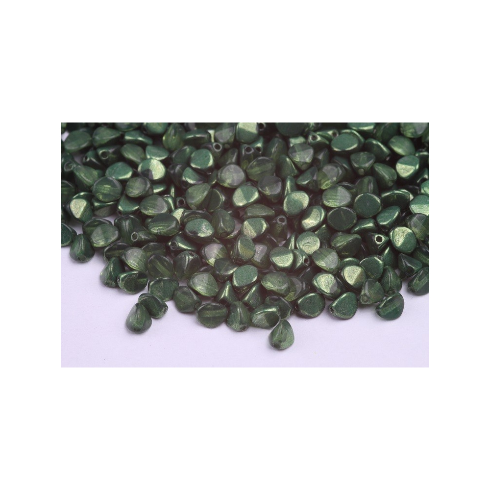 Zelená barva v hlubokém, sytém odstínu s jemným metalickým odleskem dělá z těchto skleněných korálků Pohanka naprostý unikát pro každou tvůrkyni. Tyto Pinch Beads o rozměru 5 x 5 mm pocházejí z rodinné dílny Rutkovský, Česká republika, kde se dodnes drží tradice pro ručně mačkané korálky. Baví mě na nich hlavně jejich specifický trojboký tvar, který v designu šperku vytváří zajímavou texturu a hloubku, kterou u běžných kulatých tvarů jen těžko dosáhnete.