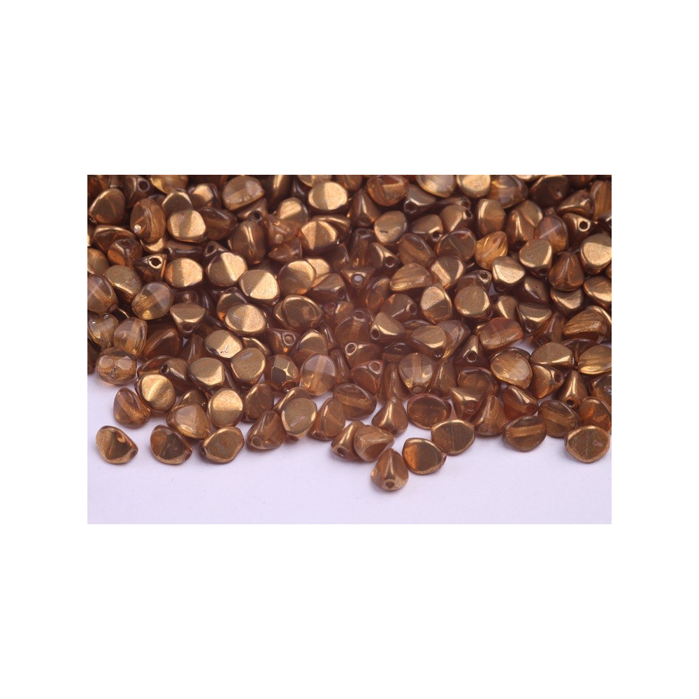 Měděná barva s hřejivými kovovými odlesky definuje tyto unikátní skleněné korálky typu Pinch Beads, které vznikají v tradiční rodinné dílně Rutkovský. Ruční lisování z vysoce kvalitního českého skla zaručuje, že každý kus nese otisk precizního řemesla, kterým je české sklářství vyhlášené po celém světě. Vizuální hloubka materiálu v kombinaci s metalickým povrchem dodává každému projektu nádech luxusu a nadčasové elegance.