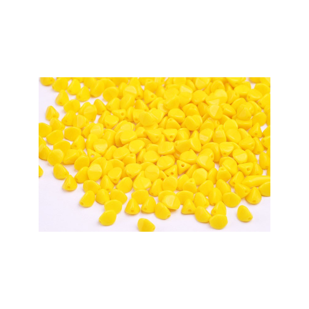 Sytě žlutá barva a unikátní trojboký tvar dělají z těchto korálků Pinch Beads nepostradatelný prvek pro každého tvůrce. Tento typ, v Česku známý jako pohanka, pochází z dílny rodinné firmy Rutkovský, Česká republika, kde se dbá na tradiční sklářství a precizní ruční lisování. Díky své velikosti 5 x 5 mm skvěle zapadají do složitých vzorů, kde rokajl Preciosa velikosti 10/0 slouží jako ideální výplň mezi jednotlivými hranami a pomáhá stabilizovat geometrii šperku.