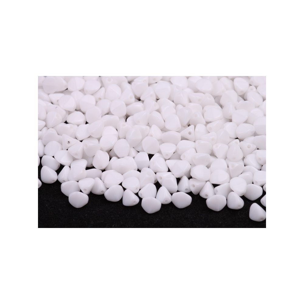 Bílá křídová barva těchto ručně mačkaných skleněných korálků dokonale reprezentuje precizní tradiční české sklářství z dílny rodinné firmy Rutkovský, Česká republika. Tento specifický tvar, známý pod mezinárodním názvem Pinch Beads, vzniká pečlivým lisováním skla do trojbokých forem, což jim dodává unikátní geometrický charakter vhodný pro prostorové vzory. Při tvorbě složitějších bižuterních kousků se tyto korálky často používají v kombinaci s materiály jako Matubo™ SuperDuo, kde jejich trojhranný profil krásně vyplňuje mezery v mozaikových strukturách a vytváří zajímavý reliéf.