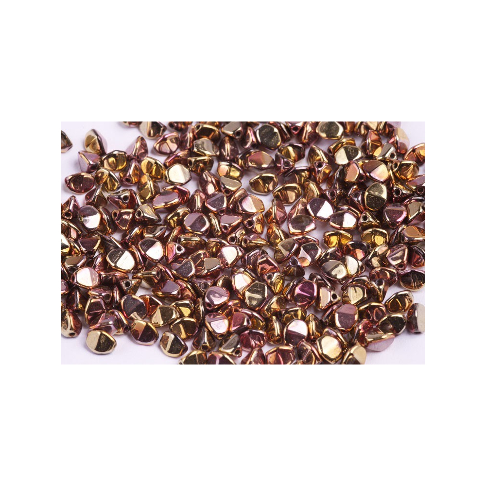 Růžovozlaté odlesky povrchové úpravy California Pink na korálcích typu Pinch Beads přinášejí do bižuterní tvorby nevídanou hloubku a kovový lesk. Tyto ručně mačkané skleněné korálky od rodinné firmy Rutkovský se od běžných kulatých perel liší svým specifickým trojbokým tvarem, který připomíná zrnko pohanky. Právě tento geometrický profil umožňuje designérům vytvářet texturované povrchy, kde se české broušené ohňovky krásně doplňují s hladkými plochami těchto mačkaných unikátů.