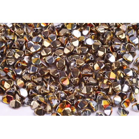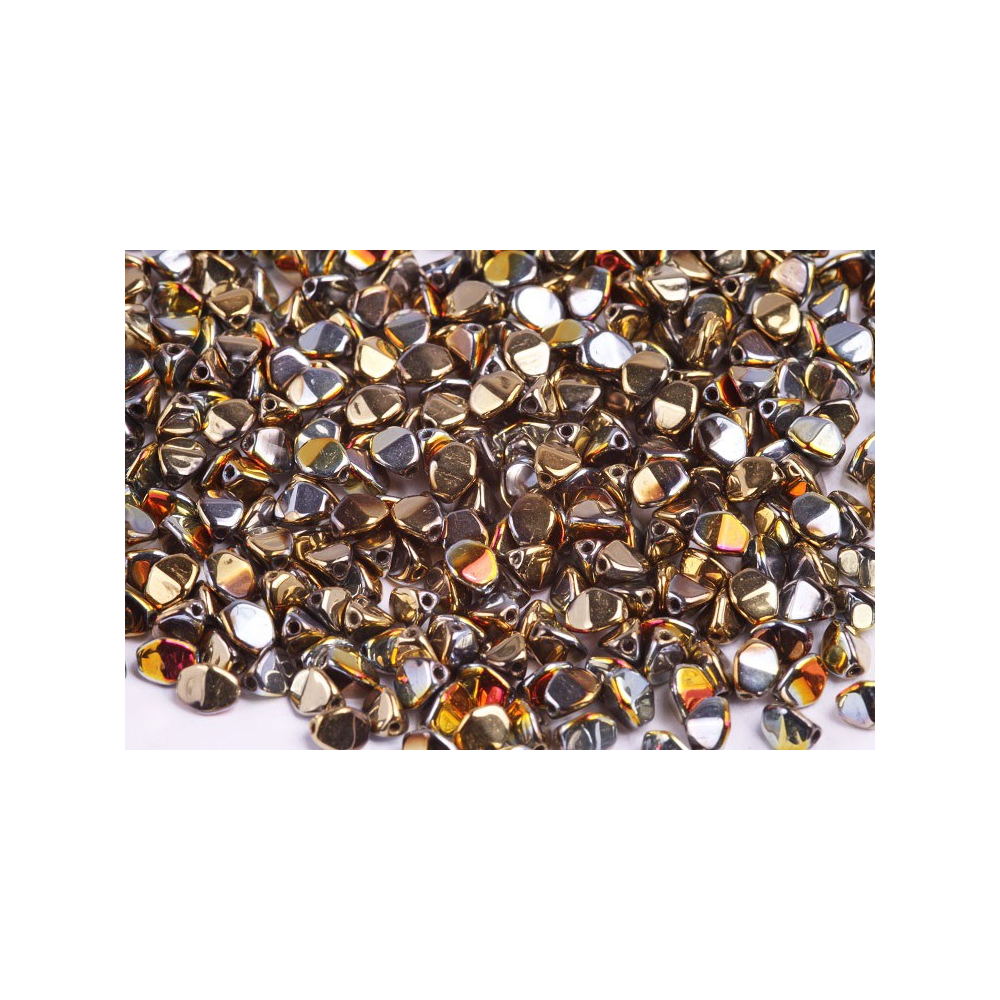 CALIFORNIA SUNSHINE povrchová úprava dodává těmto kouskům nezaměnitelný kovový odlesk, který připomíná hřejivé paprsky zapadajícího slunce. Pinch Beads, u nás známé jako pohanka, představují unikátní trojboký tvar, jenž je výsledkem precizního tradičního českého sklářství a dlouholetého vývoje v oblasti skleněných komponentů.
