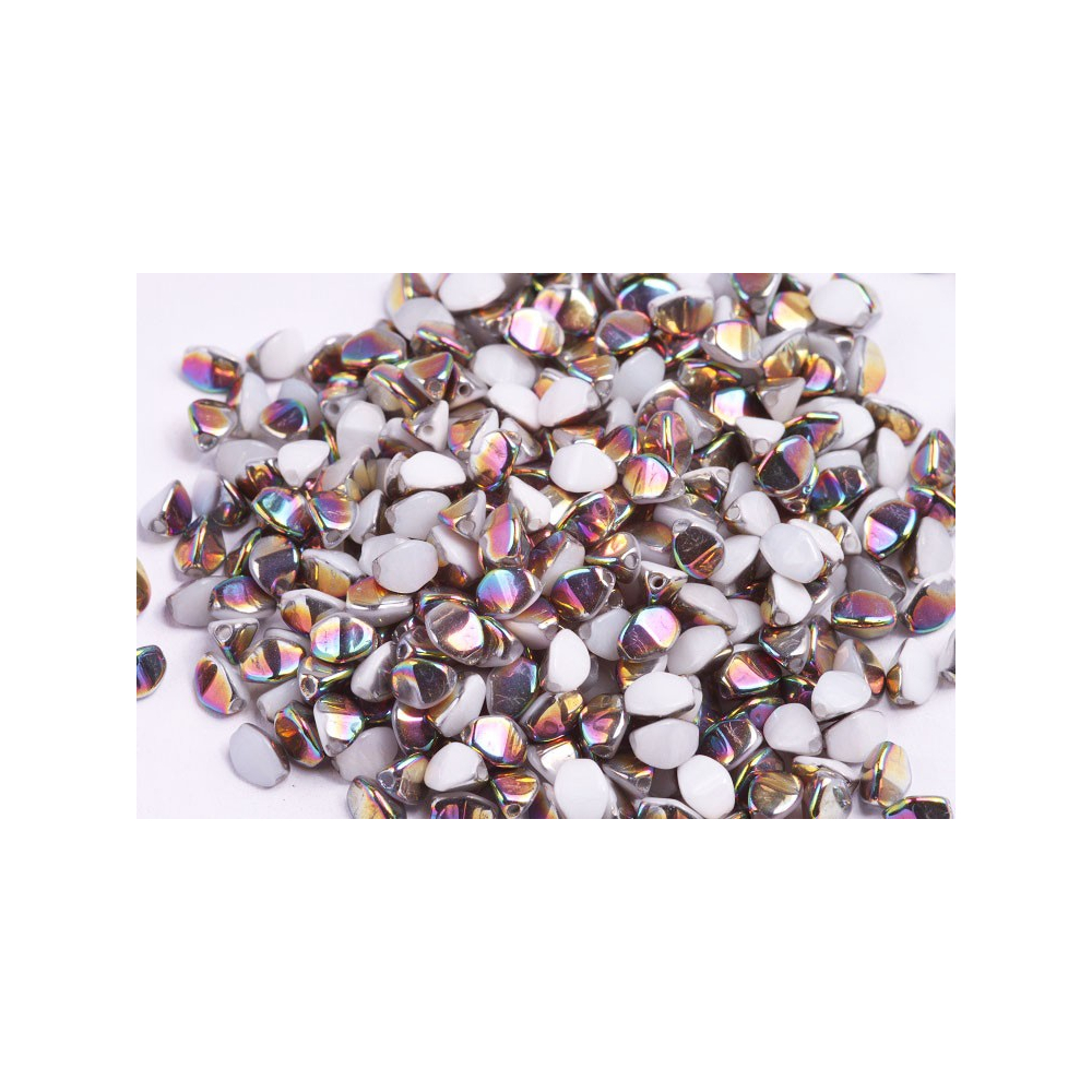 Sněhově bílý základ oživený magickými odlesky barevné duhy vytváří z těchto skleněných korálků typu Pinch beads dokonalý prvek pro každou kreativní duši. Každý kousek nese stopy tradičního českého sklářství a precizní práce, která vynikne zejména při hře světla na jemně broušených hranách. Povrchová úprava White Vitrail dodává šperku hloubku a luxusní vzhled, který je u běžných plastových náhražek nedosažitelný.