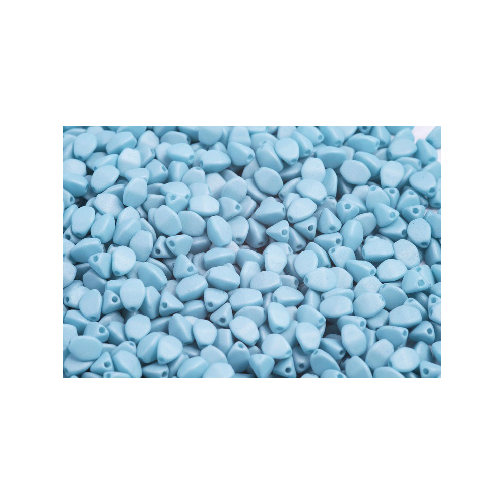Opaque Light Azore Silk Mat barva dodává těmto skleněným korálkům jemný, saténový vzhled, který vynikne v každém detailu. Pinch Beads, v českém prostředí známé jako Pohanka, představují unikátní trojboký tvar vznikající tradičním lisováním v rodinné mačkárně Rutkovský. Oproti běžným kulatým perličkám nabízí tento specifický tvar mnohem zajímavější hru stínů a textur, což umožňuje vytvářet vizuálně bohatší povrchy šperků.