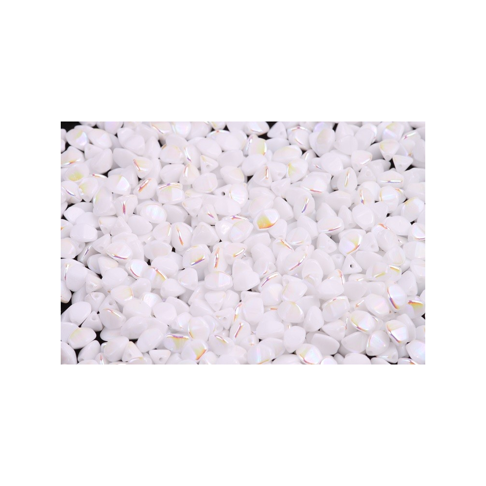Sněhově bílá barva se setkává s jemnými odlesky ranní rosy v těchto precizně tvarovaných prvcích. Skleněné korálky s názvem Pohanka přinášejí do vaší tvorby čistotu a eleganci, kterou podtrhuje decentní AB efekt. Tento poloprůhledný, alabastrový základ odráží světlo v měkkých duhových tónech, čímž dodává hotovému šperku hloubku a sofistikovanost.