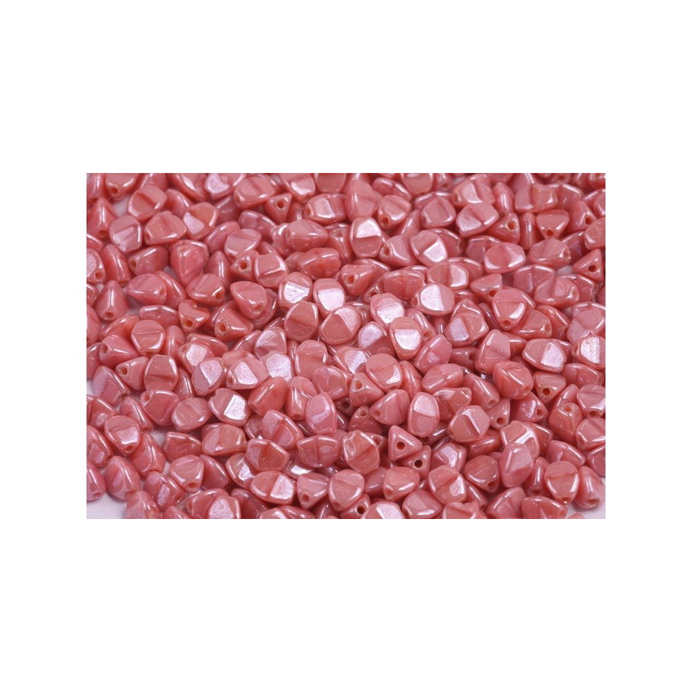 Korálově růžový tóny v kombinaci s jemným perleťovým odleskem vytvářejí z těchto skleněných kousků ideální prvek pro něžné šperkové sestavy. Pohanka, mezinárodně známá jako Pinch Beads, představuje unikátní trojboký tvar, který se díky svým zkoseným hranám dokonale skládá do kruhových vzorů i lineárních řetězců.