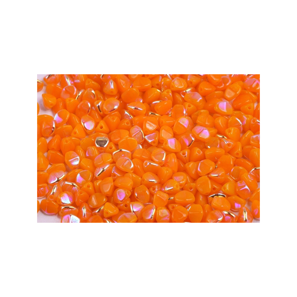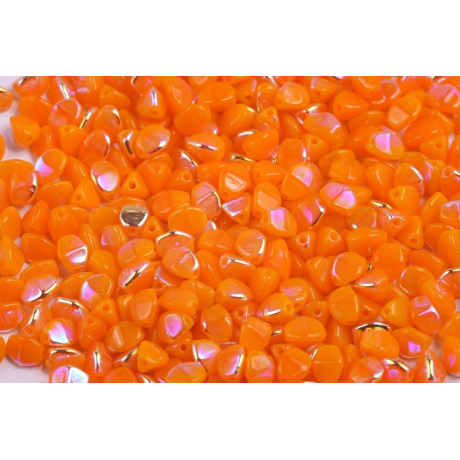 Sytě oranžová barva s úchvatným AB efektem dodává těmto korálkům typu Pinch Beads neobyčejnou hloubku a zářivost, která okamžitě upoutá pozornost v každém šperku. Tento specifický trojboký tvar, v Česku známý jako pohanka, nabízí designérům jedinečnou geometrii pro vytváření složitých prostorových vzorů i jednoduchých elegantních řad. Povrchová úprava s duhovými odlesky reaguje na pohyb světla a mění svůj vzhled podle úhlu pohledu.