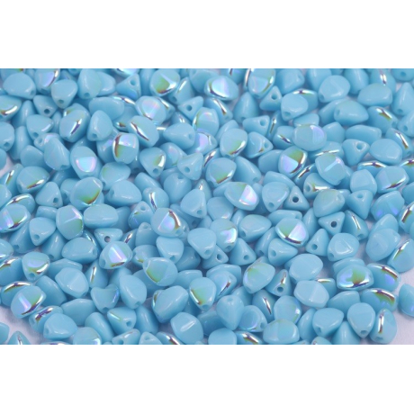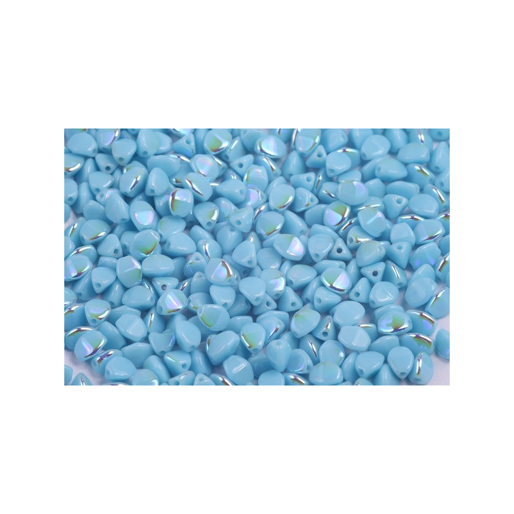 Světle modrý odstín s jemným duhovým odleskem otevírá nekonečné možnosti pro precizní korálkování a tvorbu originálních doplňků. Tyto skleněné korálky s mezinárodním označením Pinch Beads, u nás známé pod názvem Pohanka, vynikají svým specifickým trojbokým tvarem, který do každého šperku vnáší dynamiku a zajímavou strukturu. Povrchová úprava AB (Aurora Borealis) na neprůhledném základu vytváří hravé barevné efekty, které se mění s každým pohybem nositelky a dopadem světla.