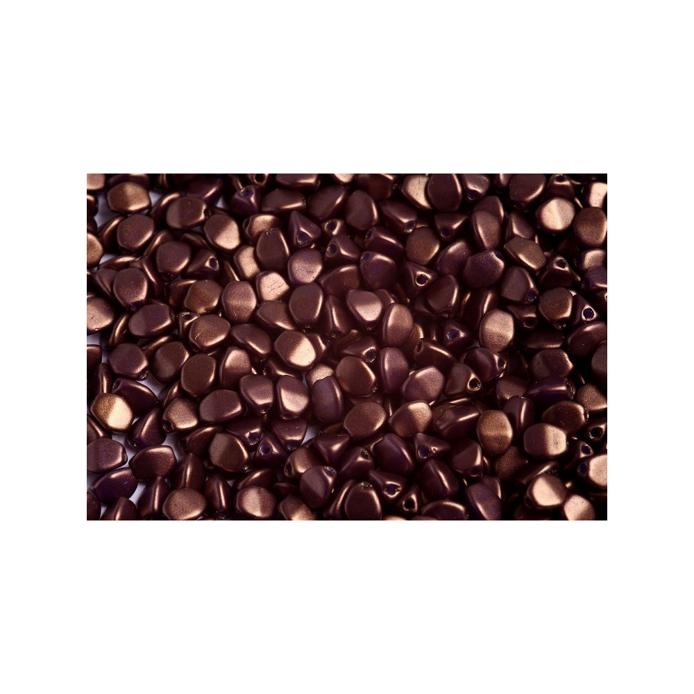 Rozměr 5 x 5 mm a specifický tvar Pinch Beads, v Česku známý jako pohanka, umožňují díky třem zploštělým stranám perfektní sesazení. Geometrická přesnost těchto prvků je ideální pro prostorové šití a vytváření bohatých struktur. Materiál sklo v odstínu Saddle Brown s metalickým leskem vynikne zejména v kombinaci s kovovými komponenty v barvě staromědi.