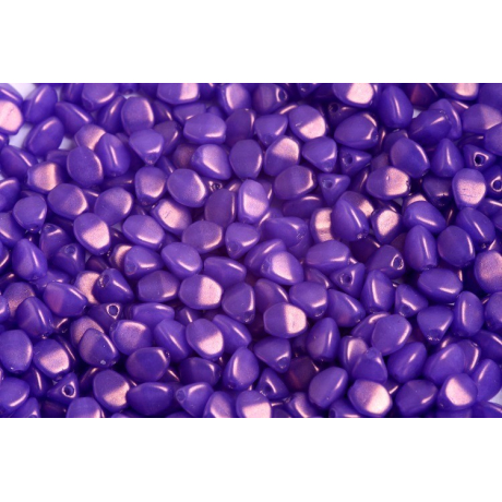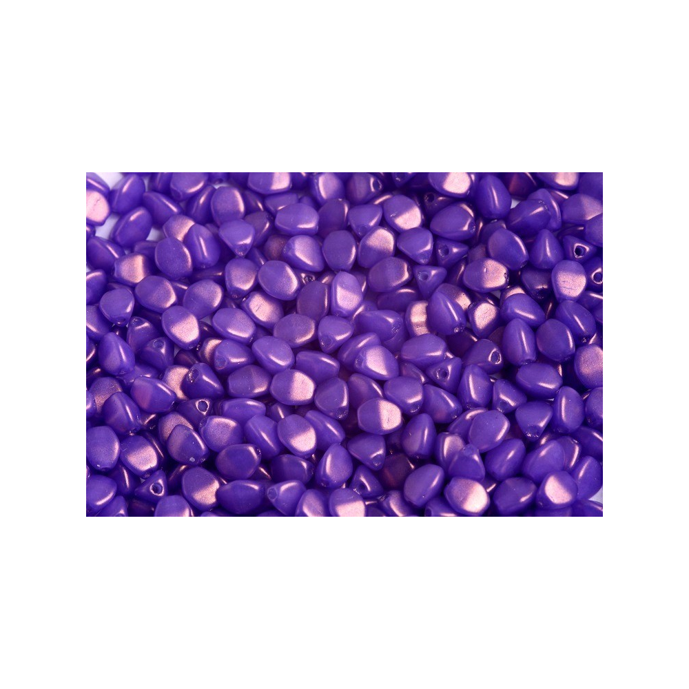 Rozměr 5 x 5 mm a tvar připomínající zrnko pohanky nabízejí nekonečné možnosti v technice beadweaving i při výrobě jednodušších bižuterních doplňků. Díky svému specifickému trojbokému tvaru do sebe korálky při šití krásně zapadají a vytvářejí bohatou texturu s hlubokými stíny a výraznými jasy. Povrchová úprava Gold Shine dodává fialovému podkladu luxusní metalický nádech, který se dynamicky proměňuje podle úhlu dopadajícího světla.