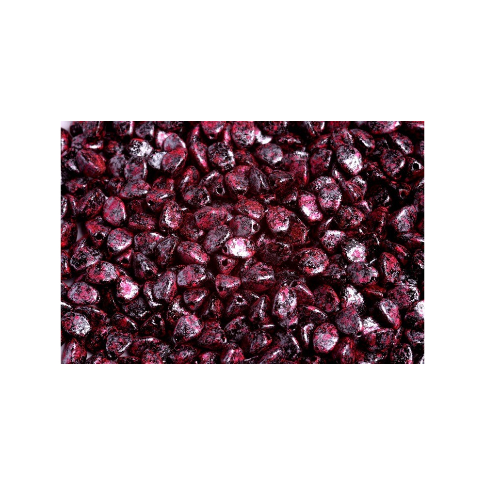 Fuchsiová barva s nezaměnitelným tmavým melírem vytváří na povrchu těchto korálků efekt, který připomíná drahé kameny nebo luxusní textilie. Tyto ručně mačkané Pinch beads o velikosti 5 x 5 mm jsou hrdým zástupcem tvorby rodinné firmy Rutkovský, Česká republika, kde se tradice snoubí s precizním řemeslem. Při návrhu náhrdelníků či náramků se výborně kombinují s rokajlem Preciosa, který v designu funguje jako jemný propojovací prvek a dává vyniknout unikátnímu trojbokému tvaru pohanky.
