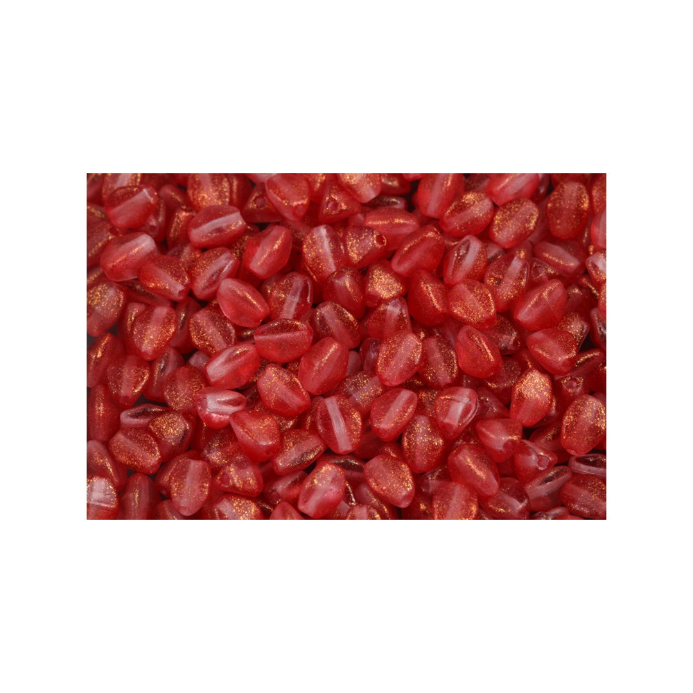 Červená barva s hřejivými zlatými odlesky dodá vašemu tvoření nádech luxusu, který zaručují české skleněné korálky od tradičního výrobce Rutkovský. Tyto ručně mačkané Pinch beads, u nás vyhledávané pod názvem pohanka, vynikají rozměrem 5 x 5 mm a specifickým trojbokým tvarem, který je ideální pro kombinaci s materiálem Matubo™ SuperDuo v náročných prostorových vzorech. Pro dosažení harmonického vzhledu doporučujeme tyto korálky párovat s mléčně opálovými tóny nebo kontrastním černým jetem, což podtrhne jejich jedinečnou hloubku a lesk.