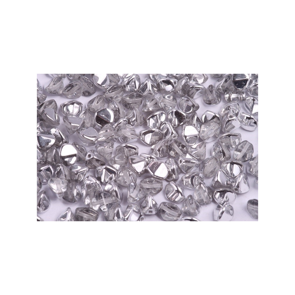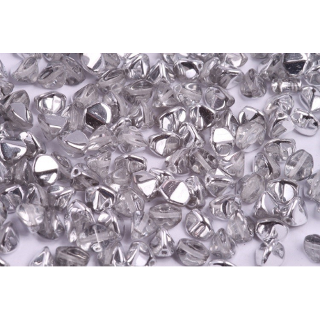 Stříbřitě lesklý povrch povrchové úpravy Crystal Labrador dodává těmto skleněným korálkům typu Pinch Beads (pohanka) luxusní kovový vzhled. Každý kus pochází z dílny rodinné firmy Rutkovský, Česká republika, kde se dodnes udržuje tradiční řemeslo ručního lisování skla. Tyto unikátní komponenty o velikosti 7 mm jsou vyhledávané pro svou geometrickou přesnost a schopnost odrážet světlo, díky čemuž skvěle fungují v kombinaci s materiály jako rokajl Preciosa, který poslouží jako ideální výplň v mezerách mezi jednotlivými trojbokými vzory.