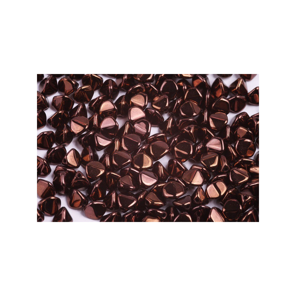 Hluboký bronzový odlesk metalického povrchu Vega on Jet dodává těmto ručně lisovaným korálkům nádech luxusu a historie. Typický trojboký tvar, mezinárodně známý pod názvem Pinch Beads, vzniká precizním lisováním v rodinné mačkárně firmy Rutkovský v severních Čechách. Každý jednotlivý kus nese stopu poctivé ruční práce, která je pro tradiční české sklářství charakteristická již po generace a představuje spojení řemeslné dovednosti s moderním designem.
