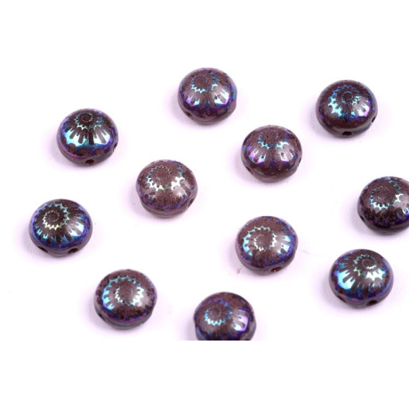 Skleněné mačkané korálky Ginko 7,5 x 7,5 mm IONIC JET/BLUE 02010-24618 Velikost: 7,5 x 7,5 mm...