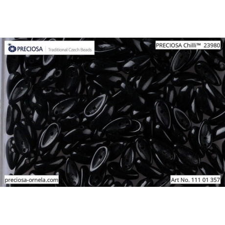 Mačkané dvoudírkové korálky Preciosa Chilli 4 x 11 mm Black Opaque 23980
