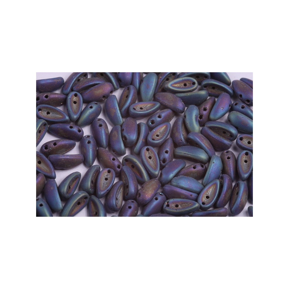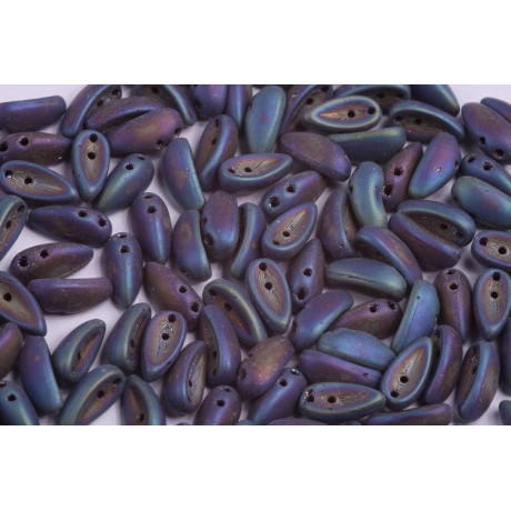 Mačkané dvoudírkové korálky Preciosa Chilli 4 x 11 mm Black Opaque, Blue Iris, Matt 23980/21135