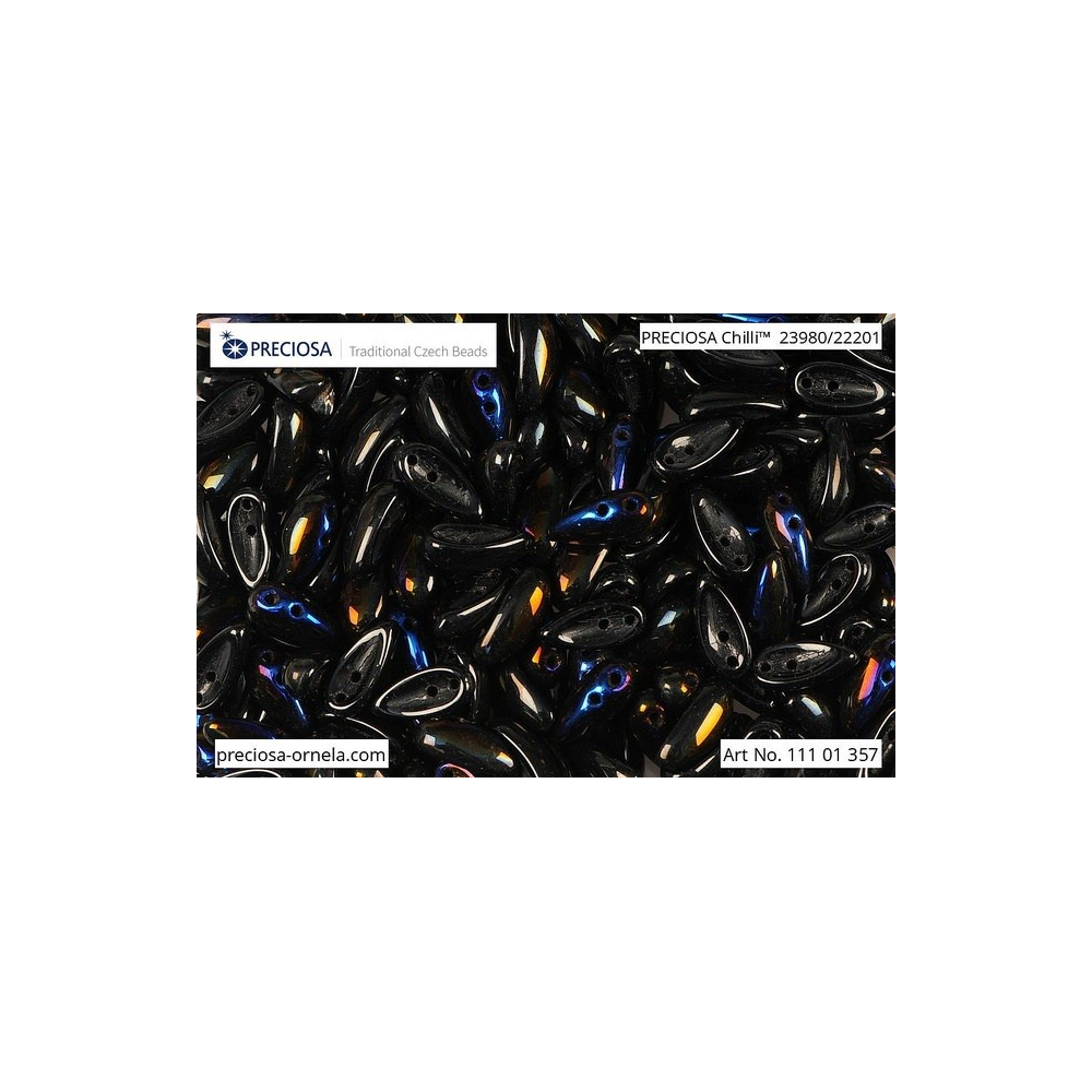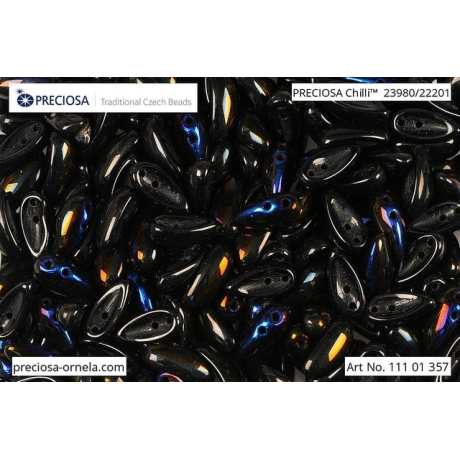 Černá barva s fascinujícími azurovými odlesky efektivně řeší problém fádnosti v bižuterní tvorbě a dodává každému šperku hloubku a tajemnost. Tyto dvoudírkové korálky Preciosa Chilli o rozměru 4 x 11 mm se vyznačují unikátním prohnutým tvarem, který díky mačkanému sklu z tradiční české produkce Preciosa skvěle zapadá do kruhových motivů a složitých prostorových rozet. Pokud do svých vzorů zakomponujete české broušené ohňovky jako centrální prvek, vytvoříte s tímto materiálem dechberoucí 3D efekty, které upoutají pozornost na první pohled.