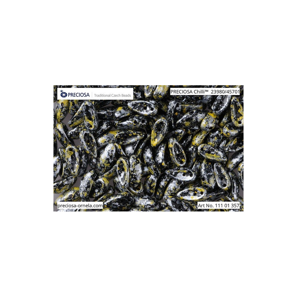 Mačkané dvoudírkové korálky Preciosa Chilli 4 x 11 mm Black Opaque, Granite Yellow 23980/45701