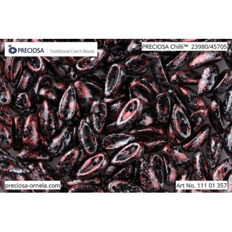 Křišťálové údolí na severu Čech dalo světu nespočet unikátních tvarů a korálky Preciosa Chilli v odstínu Black Opaque Granite Red jsou toho jasným důkazem. Jejich specifický tvar s prohnutím a dvěma dírkami vychází z generací předávaného sklářského umění, které kombinuje moderní design s úctou k ruční práci. Při tvorbě s těmito skleněnými korálky o velikosti 4 x 11 mm se vracíte ke kořenům jablonecké bižuterie, kde každý kus nese příběh mistrovského řemesla a nekonečné barevné fantazie. Balení obsahuje přibližně 20 ks těchto originálních prvků, které díky dvěma průtahům o velikosti 0,85 mm umožňují vytvářet složité prostorové vzory.