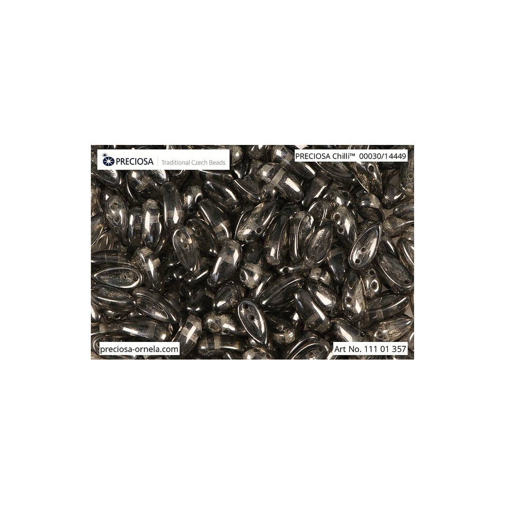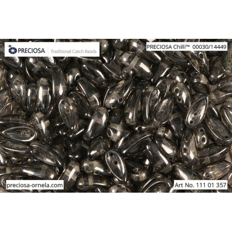 Mačkané dvoudírkové korálky Preciosa Chilli 4 x 11 mm Crystal, Transparent, Jet Luster 00030/14449