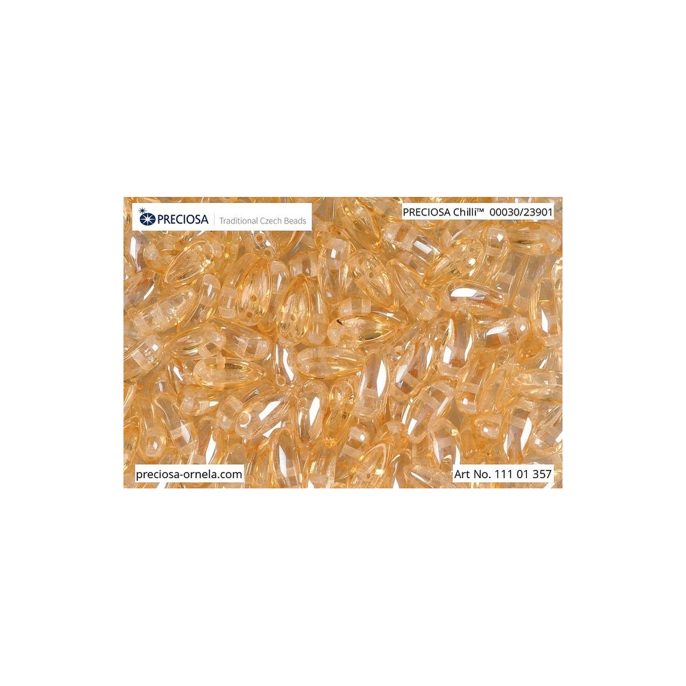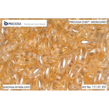 Jemný medový odlesk a originální tvar korálků Preciosa Chilli vyřeší vaše dilema, jak dodat plochým šperkům potřebný 3D efekt a dynamiku. Tyto české skleněné korálky o rozměru 4 x 11 mm v barvě Crystal Blond Flare nabízejí díky dvěma dírkám nekonečné možnosti pro prostorové tvoření a zajímavé struktury.