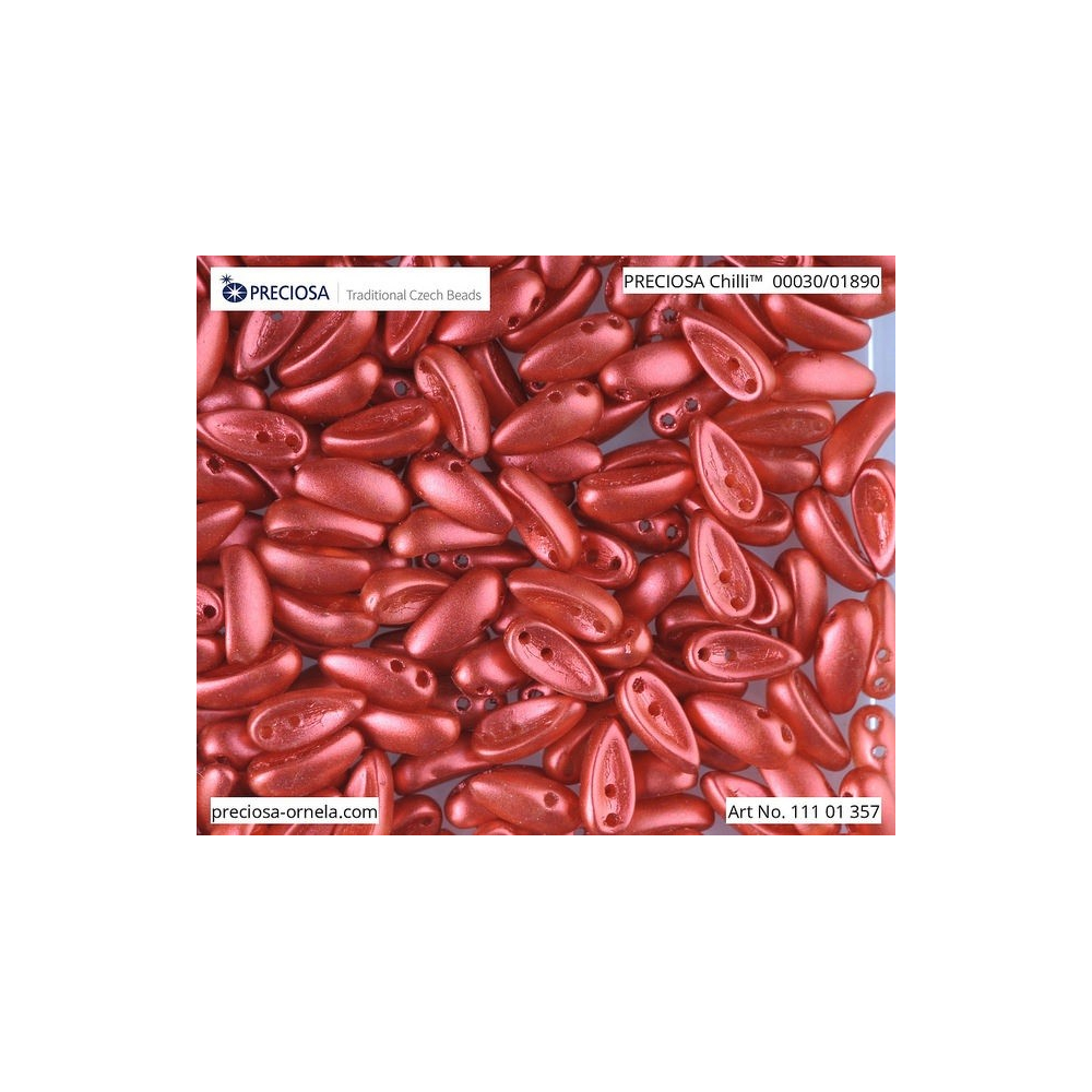 Tvar Chilli je navržen tak, aby skvěle zapadal do designů s korálky Preciosa Pip nebo SuperDuo, se kterými tvoří kompatibilní tvary.