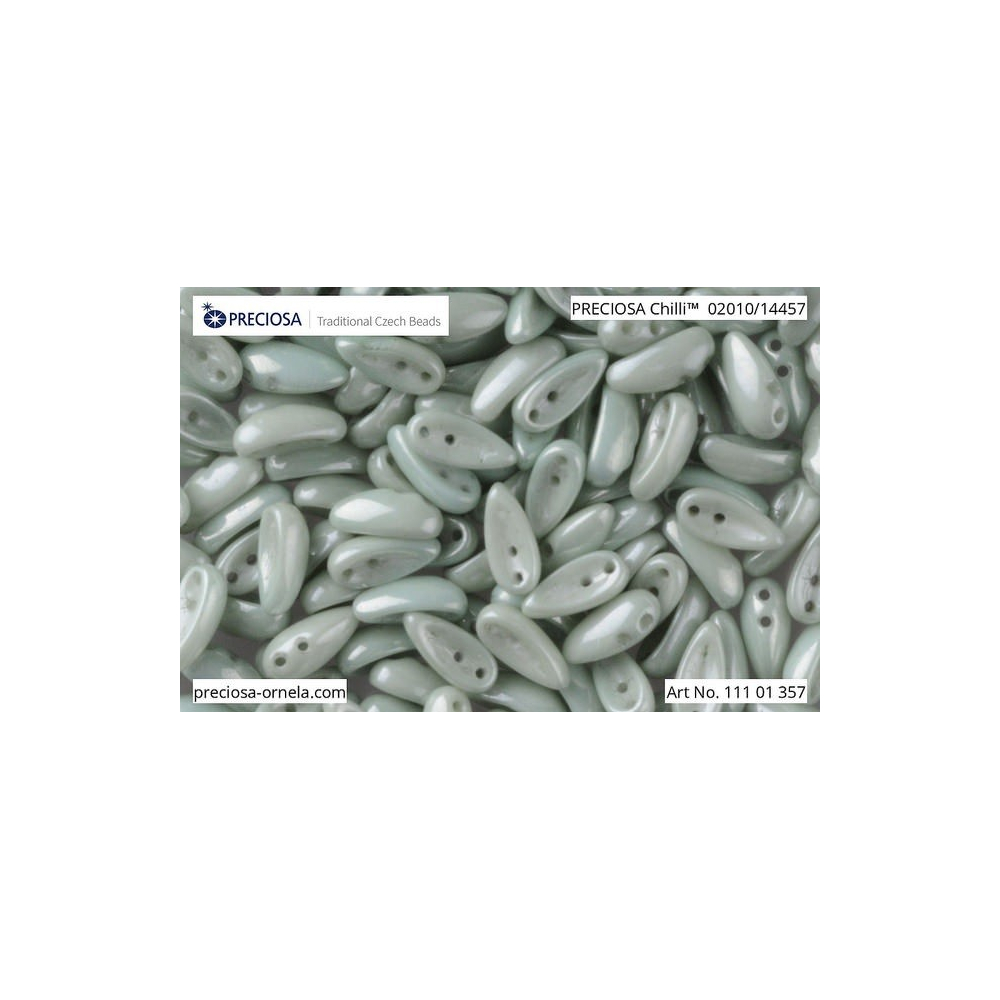 Zelenkavý nádech ranní mlhy se zrcadlí v každém kousku těchto unikátních korálků, které čerpají z více než třísetleté historie českého sklářství. Mačkané korálky v designu Preciosa Chilli představují dokonalé spojení tradičního řemesla z Jizerských hor a moderních potřeb současných šperkařů. V kombinaci s korálky Preciosa Twin můžete vytvořit například úchvatné vánoční vločky podle oblíbených návodů, které podtrhnou výjimečnost a eleganci vaší ruční tvorby.