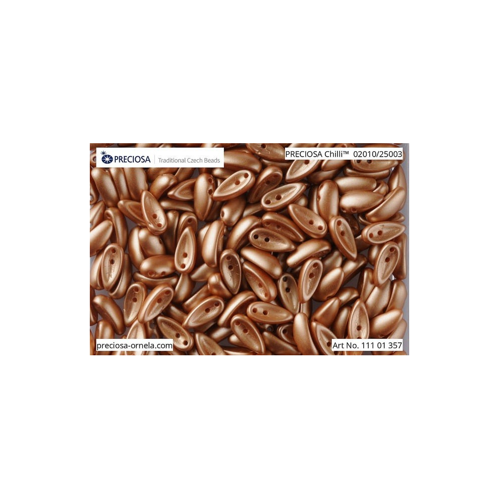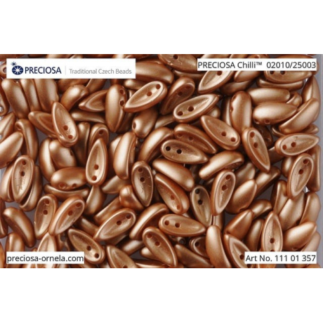 Pšeničné tóny v perleťovém provedení dodávají těmto skleněným prvkům nádech luxusu a jemné elegance. Mačkané korálky Preciosa Chilli ve tvaru prohnutého lusku o rozměru 4 x 11 mm otevírají dveře k nekonečné fantazii při tvorbě originálních šitých šperků. Jejich hladký povrch a pšeničná barva 02010/25003 s perleťovým leskem krásně odrážejí světlo, čímž dodávají hotovým náhrdelníkům i náušnicím hloubku a plastičnost.