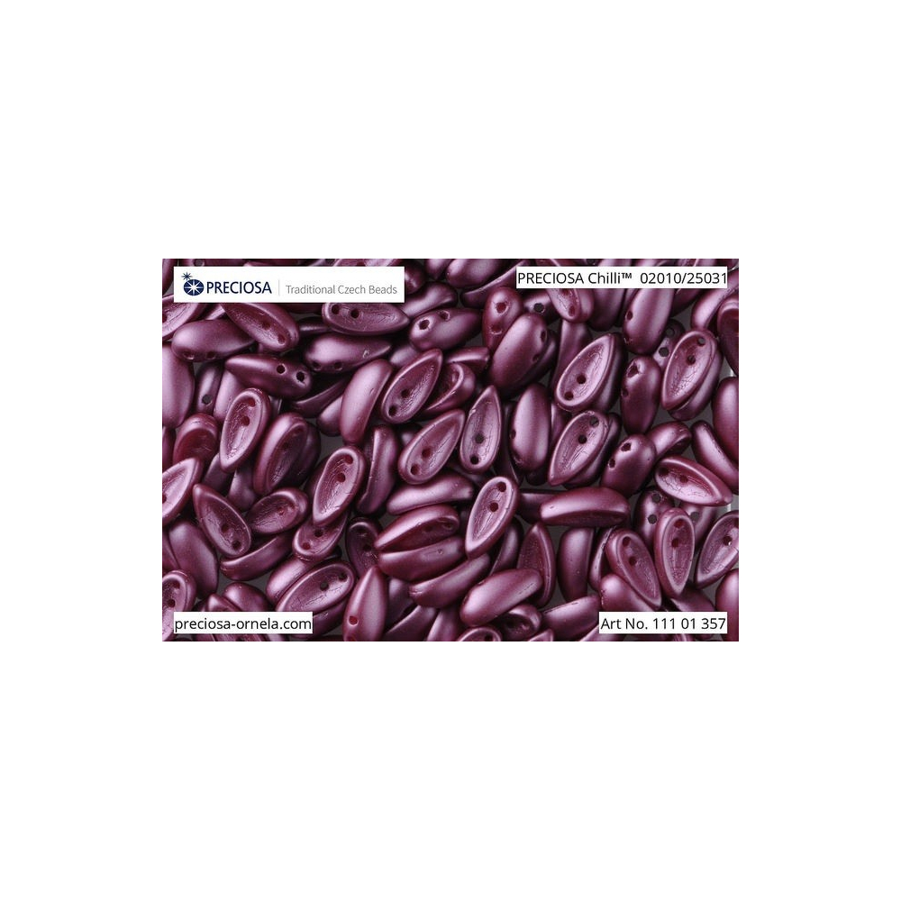 Kreativní projekty využívající techniky jako peyote steh nebo vyšívání získají díky prohnutému tvaru korálků Chilli zajímavý 3D efekt a organický vzhled. Jako ideální spojovací a výplňový materiál se v designu osvědčil klasický rokajl Preciosa, který pomáhá definovat linie šperku a zpevnit celou konstrukci. Pro výrazný barevný kontrast zkombinujte tyto burgundské korálky s černým jetem, zatímco v doprovodu zlatých akcentů vytvoříte skutečně luxusní a nadčasový klenot. Balení obsahuje přibližně 20 kusů těchto mačkaných korálků vyrobených v České republice.
