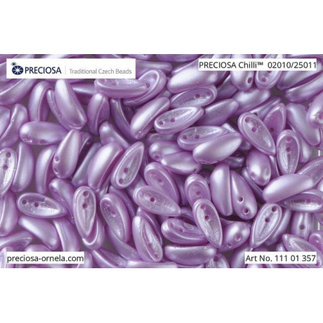 Mačkané dvoudírkové korálky Preciosa Chilli 4 x 11 mm White Alabaster, Pearl Pastels/Lilac 02010/25011