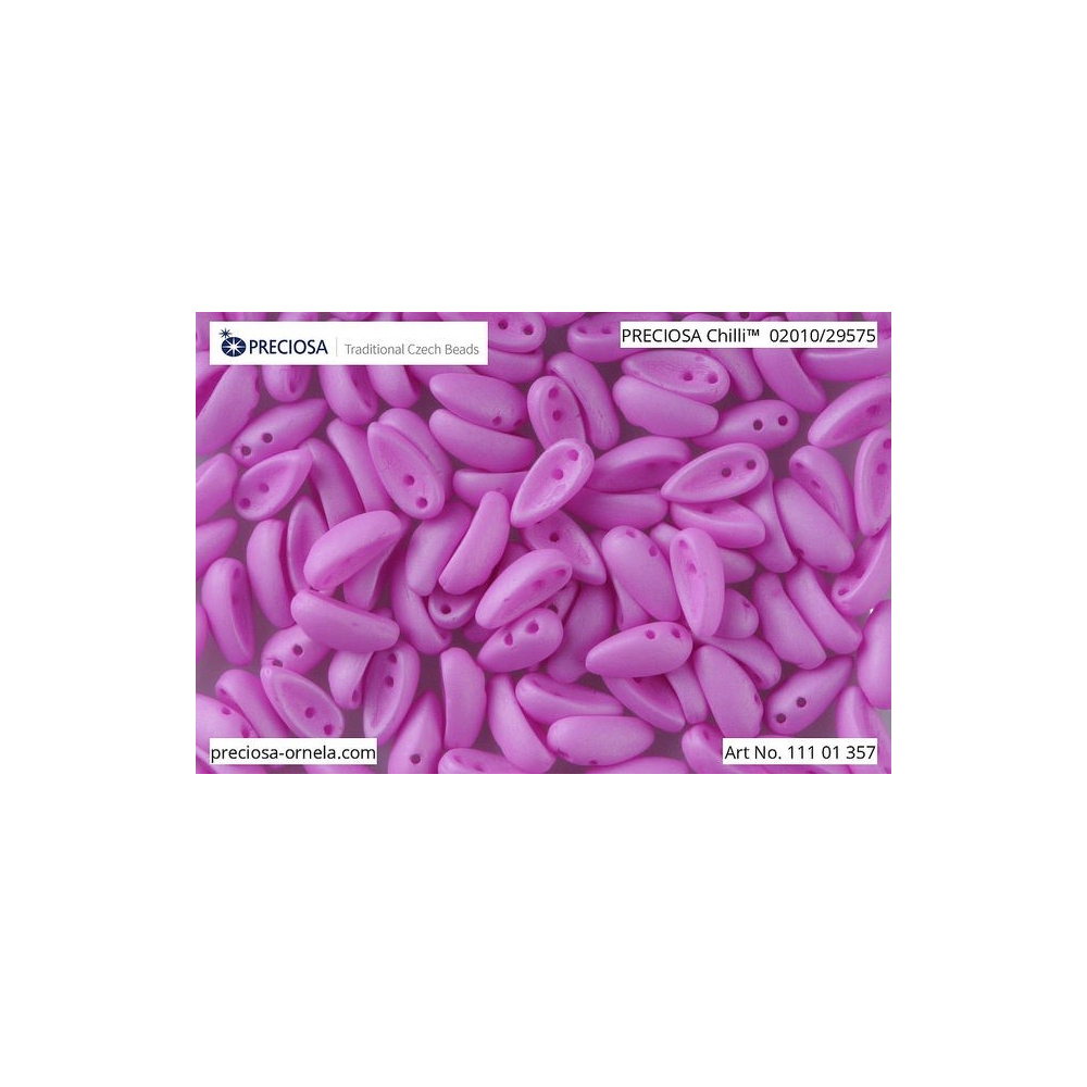 Velikost 4 x 11 mm a specificky prohnutý tvar dělají z tohoto materiálu ideální volbu pro techniku korálkové výšivky i náročné šité šperky. Dvoudírkové korálky typu Chilli umožňují velmi pevné spojení a vytváření vějířovitých struktur, ve kterých jako středový prvek krásně vyniknou české broušené ohňovky. Pro dosažení vizuální hloubky a výrazného kontrastu zkombinujte tento růžový odstín se safírově modrou, zatímco stříbrná barva dodá celému projektu luxusní neutrální akcent.