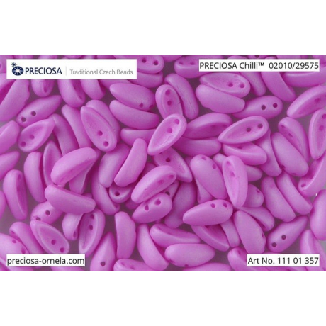 Orchid Silk matný povrch vnáší do světa bižuterie jemnou eleganci, která perfektně doplňuje současné trendy zaměřené na přírodní a květinové motivy. Tyto mačkané korálky z dílny Preciosa čerpají z bohaté české sklářské tradice a nabízejí designérům nekonečné možnosti díky své výjimečné barevné paletě. Při tvorbě prostorových náušnic nebo náhrdelníků se skvěle doplňují s dalšími tvary, jako jsou například Preciosa Thorn, se kterými snadno vytvoříte dynamické a moderní šperky.