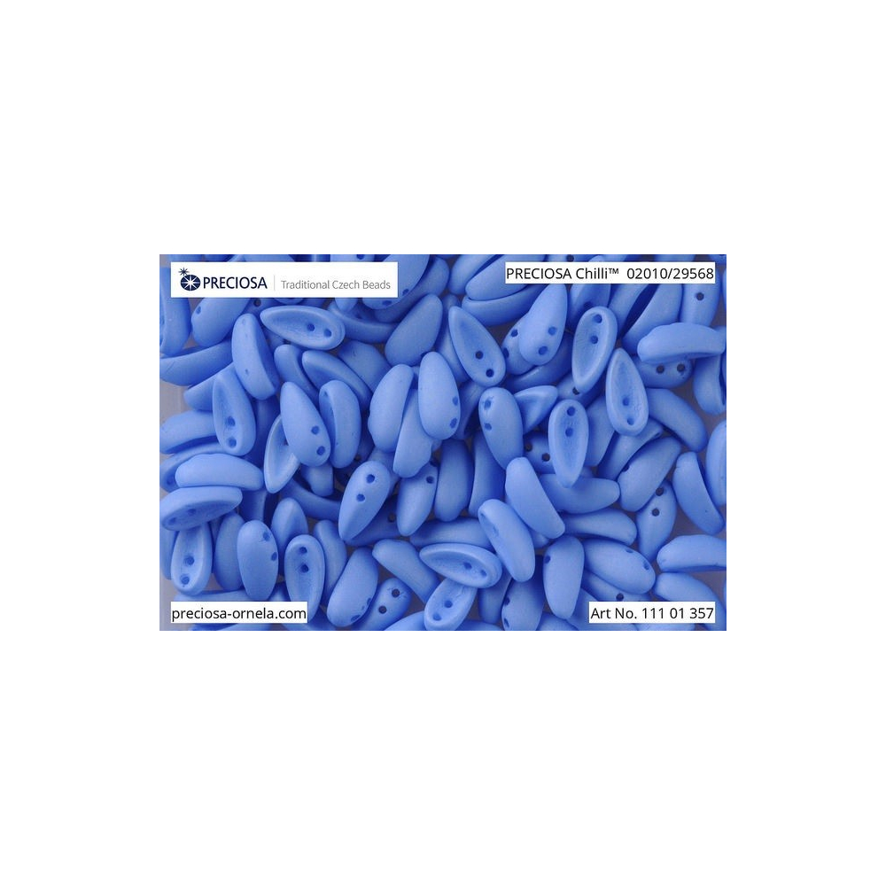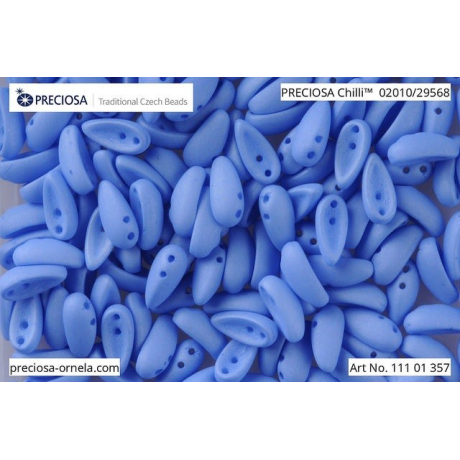 Light Sapphire Silk barva v matném provedení definuje tyto mačkané korálky Preciosa Chilli o rozměru 4 x 11 mm. Specifický prohnutý tvar se dvěma otvory o průměru 0,85 mm umožňuje vytvářet fascinující 3D efekty, které výborně doplňuje rokajl Preciosa jako spojovací materiál. Tradiční české sklo zajišťuje stálost odstínu a široké možnosti využití při tvorbě autorské bižuterie, kde oceníte hladké okraje a konzistenci skleněné hmoty.