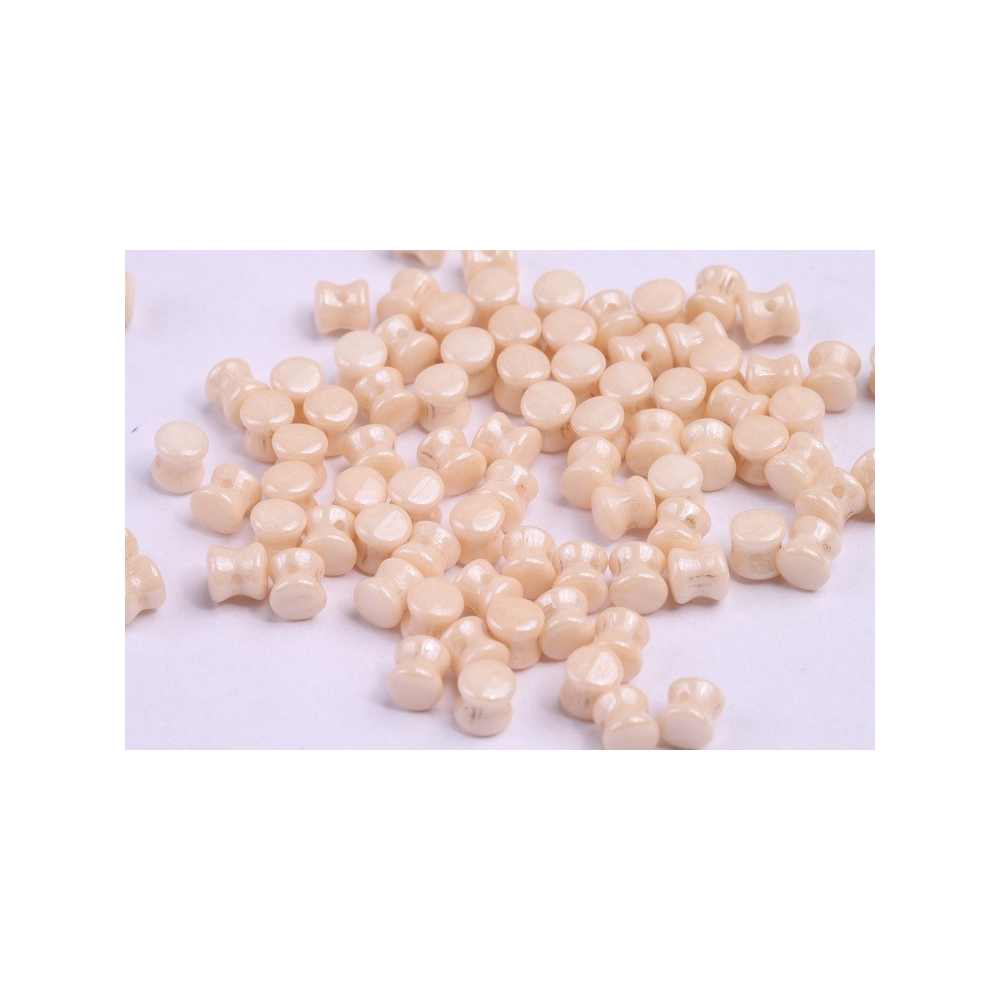 Champagne Luster povrchová úprava na kvalitním podkladu z českého skla definuje tyto mačkané korálky Preciosa Pellet. S rozměrem 4 x 6 mm a středovým průtahem o velikosti 0,8 mm jsou tyto komponenty navrženy pro precizní bižuterní práci, kde je vyžadována tvarová zajímavost a plynulost při navlékání. Specifický tvar přesýpacích hodin umožňuje unikátní zámkové spojení, které skvěle doplňuje rokajl Preciosa 6/0 v geometrických a prostorových vzorech.