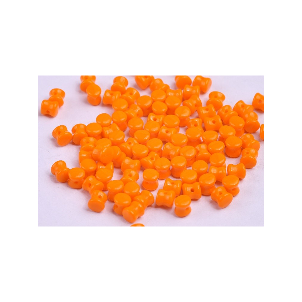 Oranžová barva v sytém neprůhledném provedení je ideálním řešením pro projekty, které postrádají výrazný akcent a energii. Tyto české skleněné korálky typu Preciosa Pellet o rozměru 4 x 6 mm pomáhají designérům překonat fádnost šperků díky svému unikátnímu tvaru přesýpacích hodin, který do sebe při skládání zajímavě zapadá.