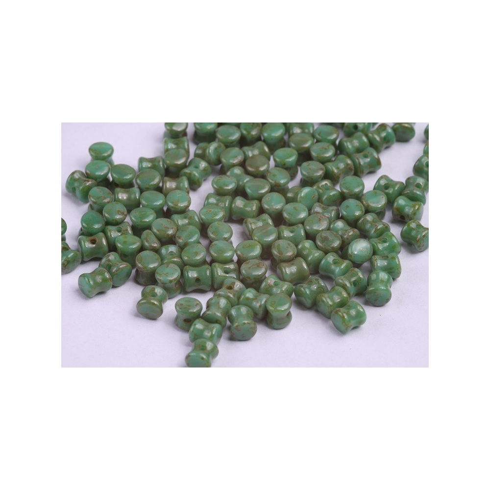 České mačkané Preciosa Pellet 4 x 6 mm TURQUOISE GREEN TRAVERTINE 63130/86805