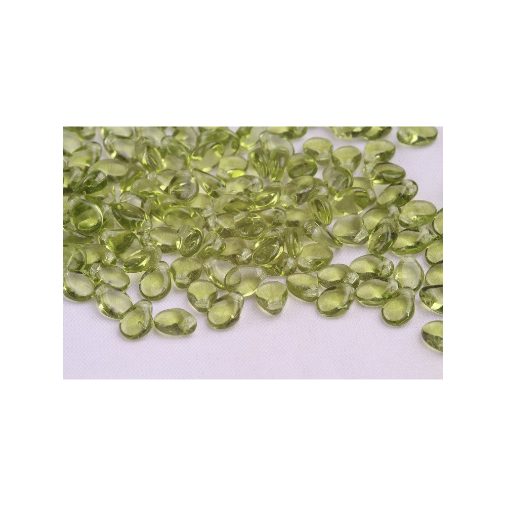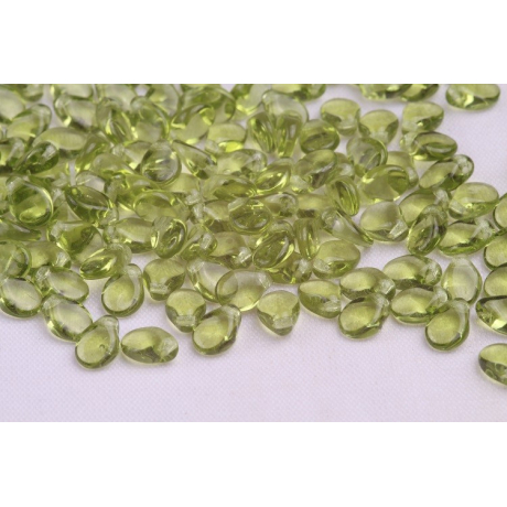 Mačkané korálky Preciosa Pip™ 5 x 7 mm Olivine Light, Transparent 50220