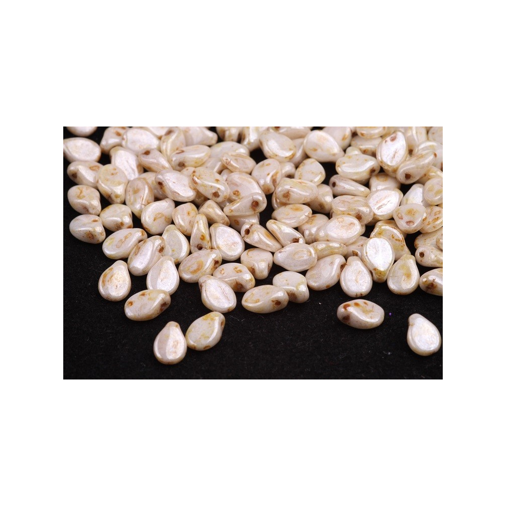 Mačkané korálky Preciosa Pip™ 5 x 7 mm White Alabaster, Picasso Honey 02010/65401